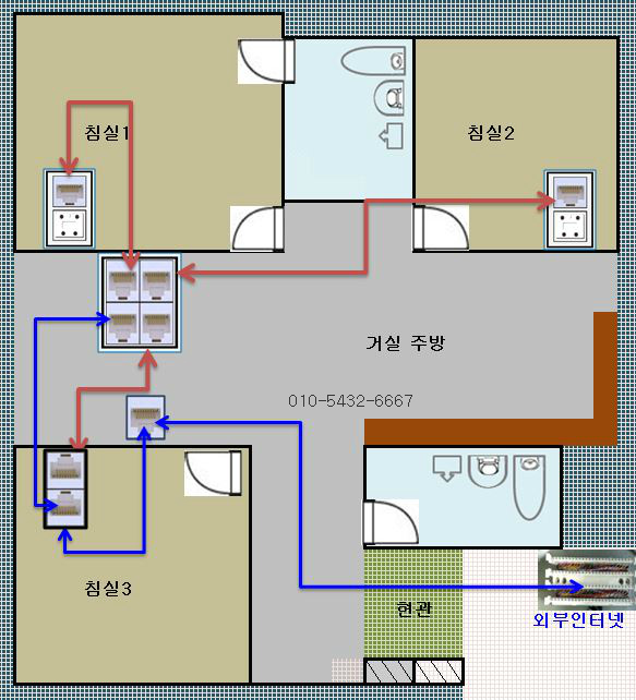 UTP 케이블 작업후에는 각각의 방마다 인터넷사용이 가능합니다