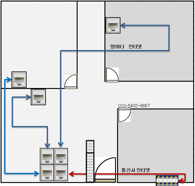 ㅡ 각각의 방마다 인터넷케이블 연결하면 방마다 인터넷사용이 가능